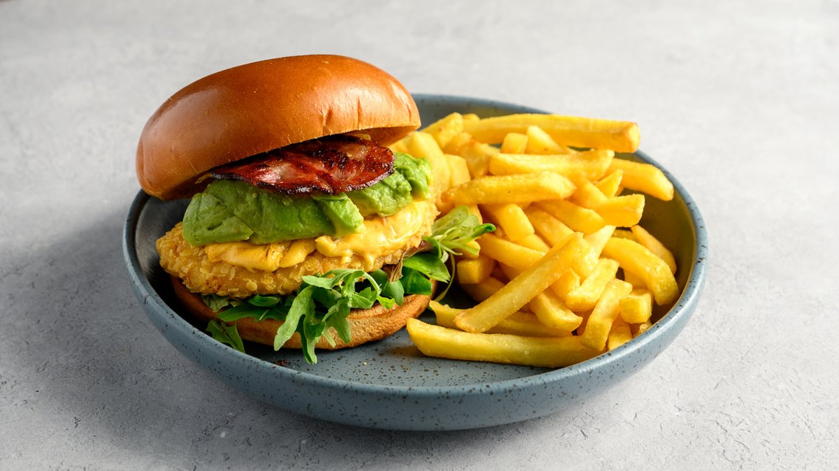 Crispy chicken fillet, avocado, bacon, cheese, lettuce and burger sauce