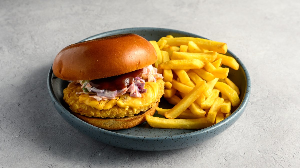 Crispy check fillet, cheese, coleslaw and barbecue sauce