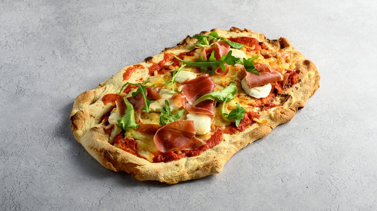 Tomato sauce, mozzarella di bufola, parma ham and rucola