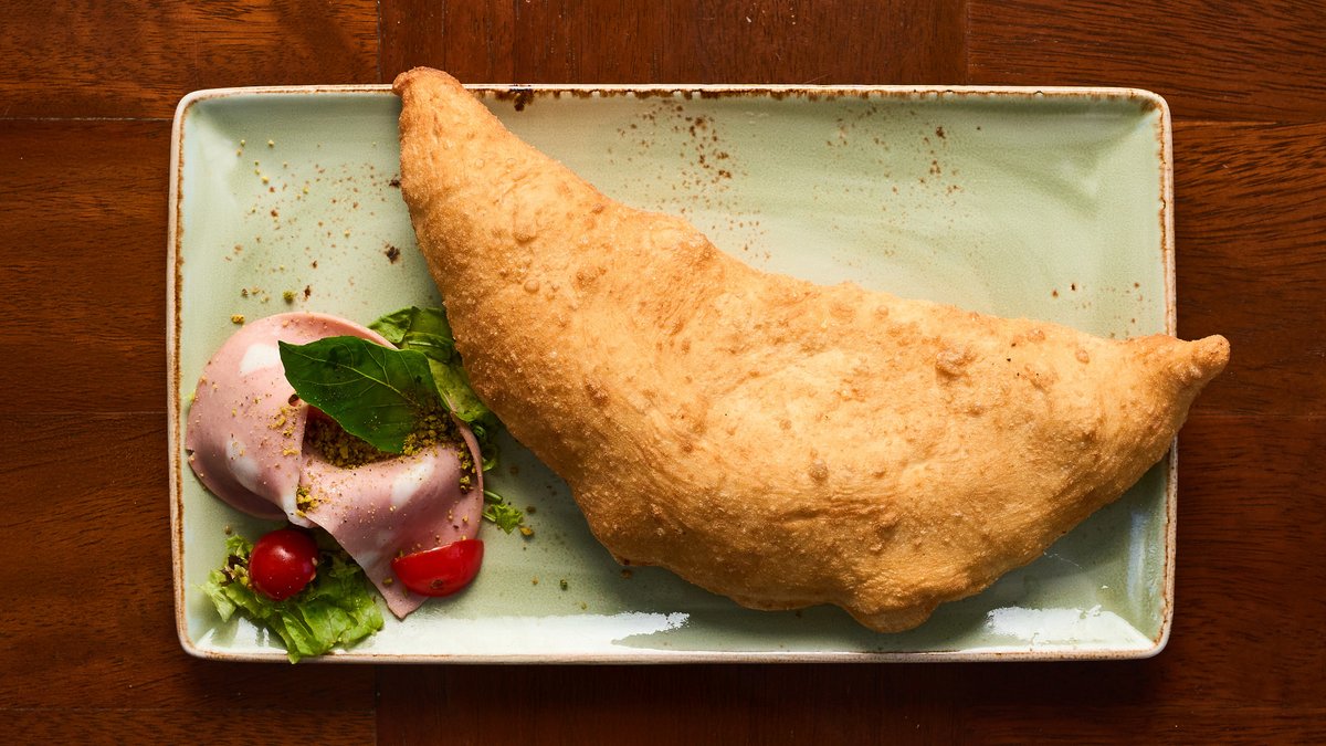 Homemade pistachio cream, mozzarella fior di latte, mortadella, mozzarella bocconcini and roasted pistachios