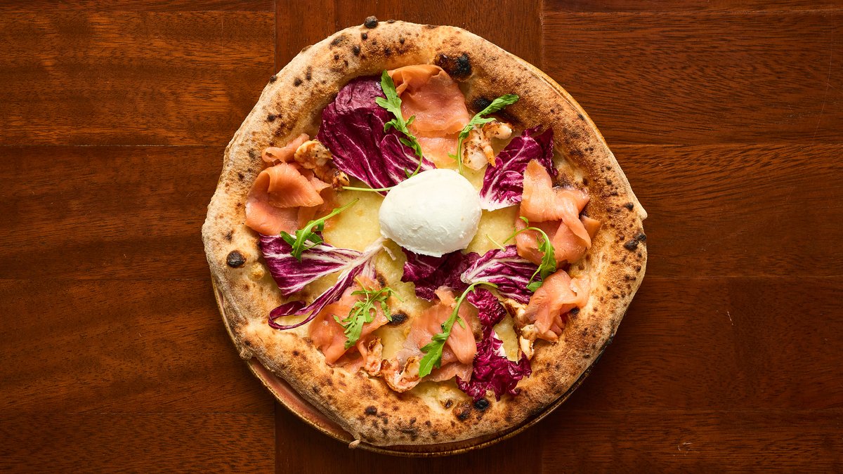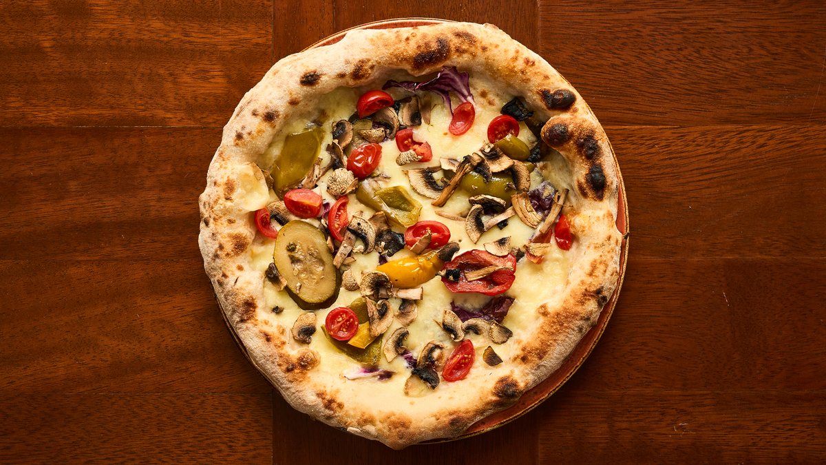 Tomato sauce, mozzarella fior di latte, mushrooms, ham, cailletier olives, artichokes, hardboiled egg and extra virgin olive oil