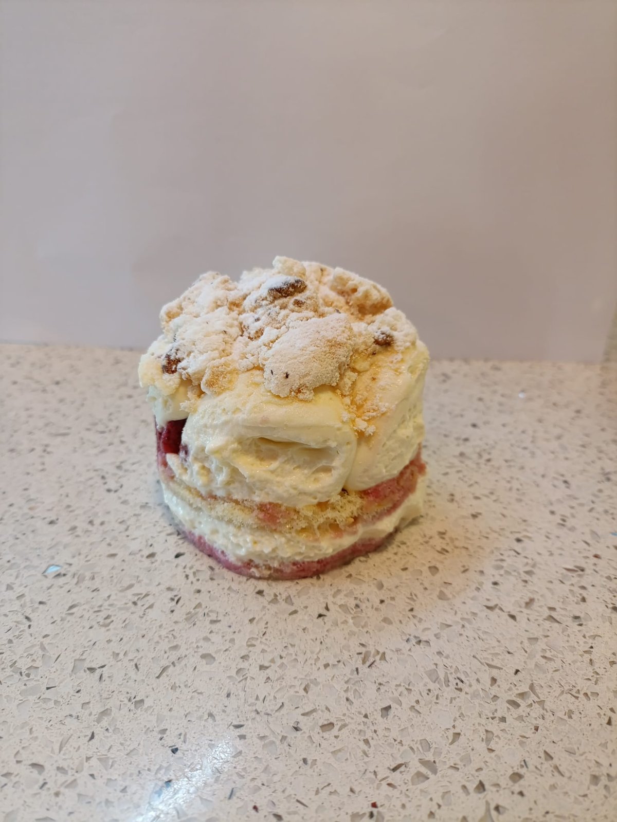 Strawberry, mascarpone tiramisu topped with meringue crumble (Mini cake - 16cm) - NOTE! This item must be ordered via scheduled delivery of a minimum of 24 hours notice