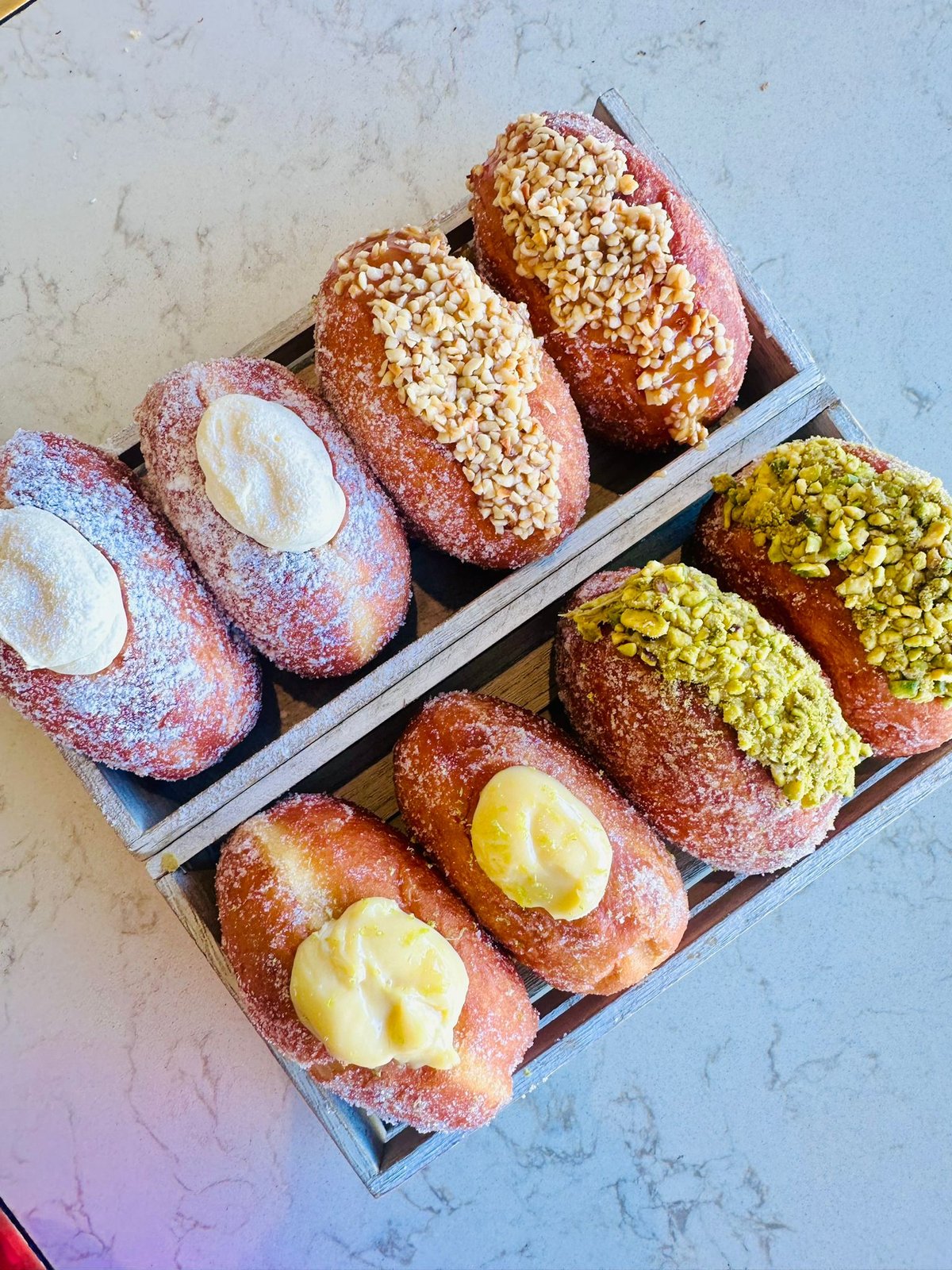 Crème pâtissière, salted caramel, fondant and caramelised pecan topping