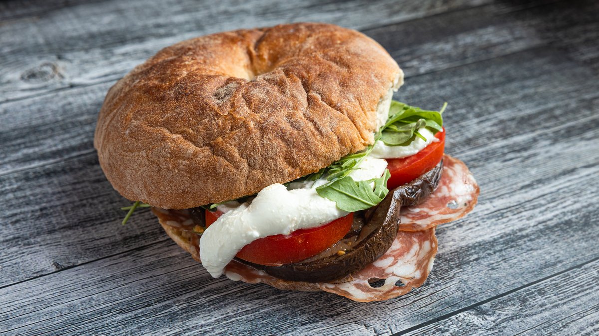 Spianata, Cherry Tomatoes , Burrata & Rucola Ciabatta