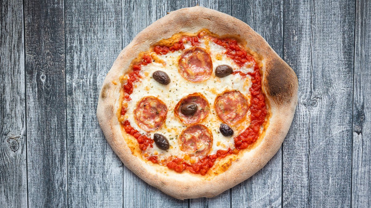 San marzano tomato sauce,mozzarella,salame napoli,olives