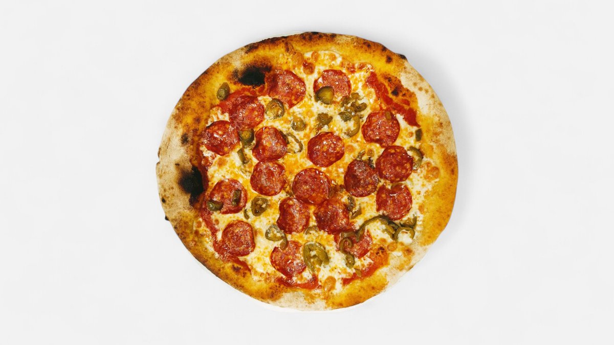 Tomato sauce, fior di latte mozzarella, mushrooms, pepperoni sausage, peas, eggs and oregano