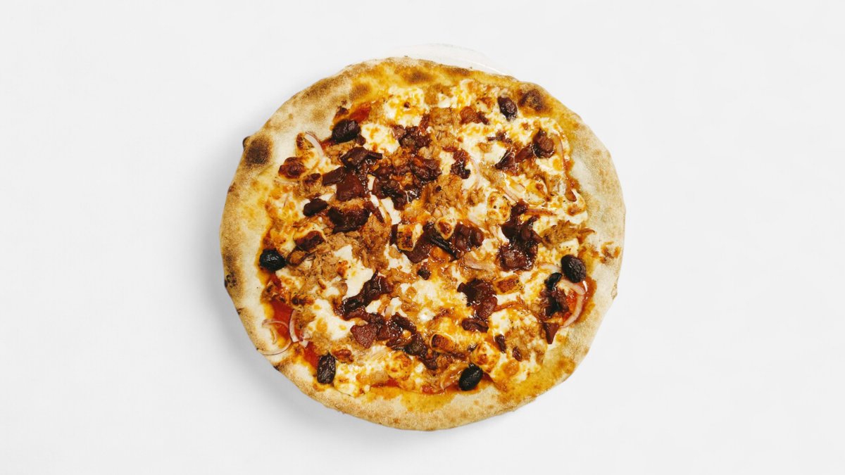 Tomato sauce, fior di latte mozzarella, minced beef, bacon, pepperoni sausage, BBQ sauce, oregano and crispy onions
