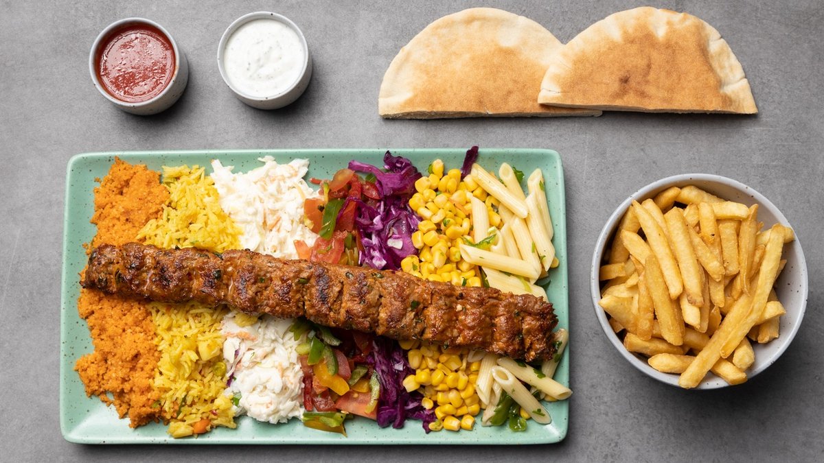 Two servings of our tasty lamb adana served in wrap with a choice of 2 salad and 1 sauce