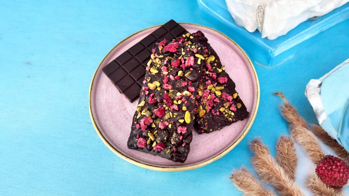 Belgian Dark Chocolate Bar With Raspberry & Pistachio, 125g (VG)