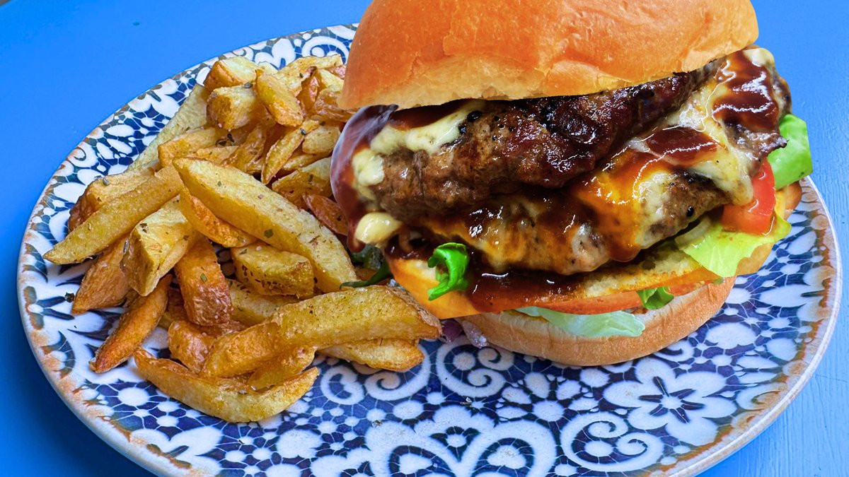 Homemade Double beef patty, Greek Concasse Salsa, Feta Crumble, Iceberg Lettuce & Tomato. Served with Hand Cut Fries.