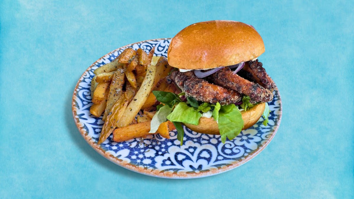 Chicken , Cheddar Cheese, Tomatoes, Crispy Onions, Iceberg Lettuce in our OWN Homemade Sauce in a Brioche Bun. Served with Hand Cut Fries