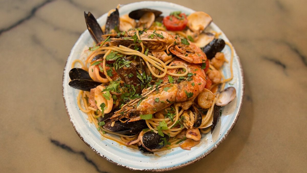Mussels, vongole, calamari, scampi with a touche of tomato sauce