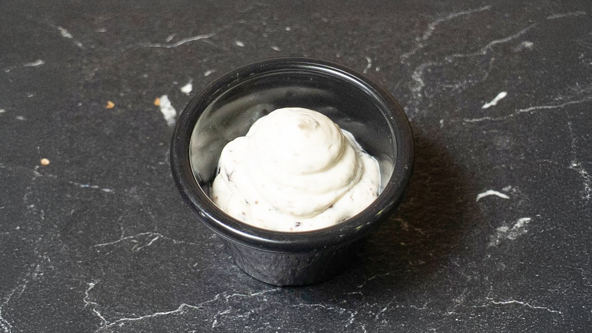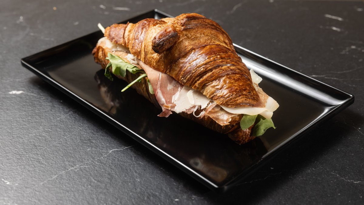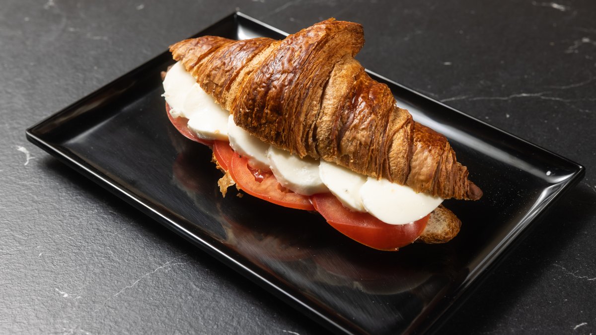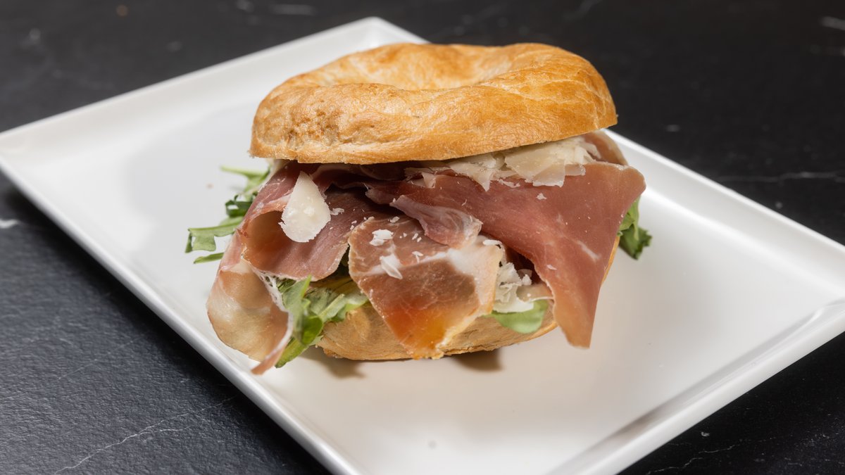Porchetta, gouda cheese, caramelised onion, tomatoes, cacio e pepe spread and rucola
