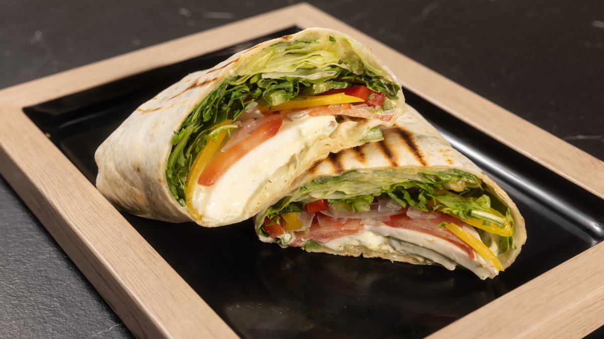 Pulled roasted chicken, crispy bacon, camembert cheese, tomatoes, lettuce and mango mayo