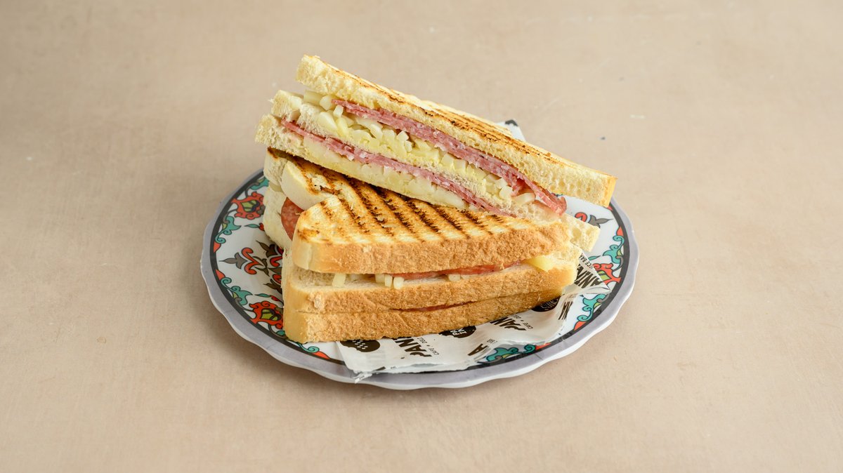 Butter, Salami Milano + Shredded Mozzarella Cross-contamination may occur. Not suitable for coeliac or severe gluten intolerance. Please contact the outlet if you have serious allergies. Toasties may need reheating, as they are likely to cool down during preparation, packaging, and delivery.