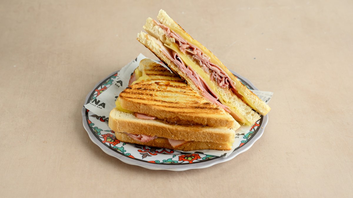 Butter, Gammon, Caramalised Onions + Aged Cheddar Cross-contamination may occur. Not suitable for coeliac or severe gluten intolerance. Please contact the outlet if you have serious allergies. Toasties may need reheating, as they are likely to cool down during preparation, packaging, and delivery.