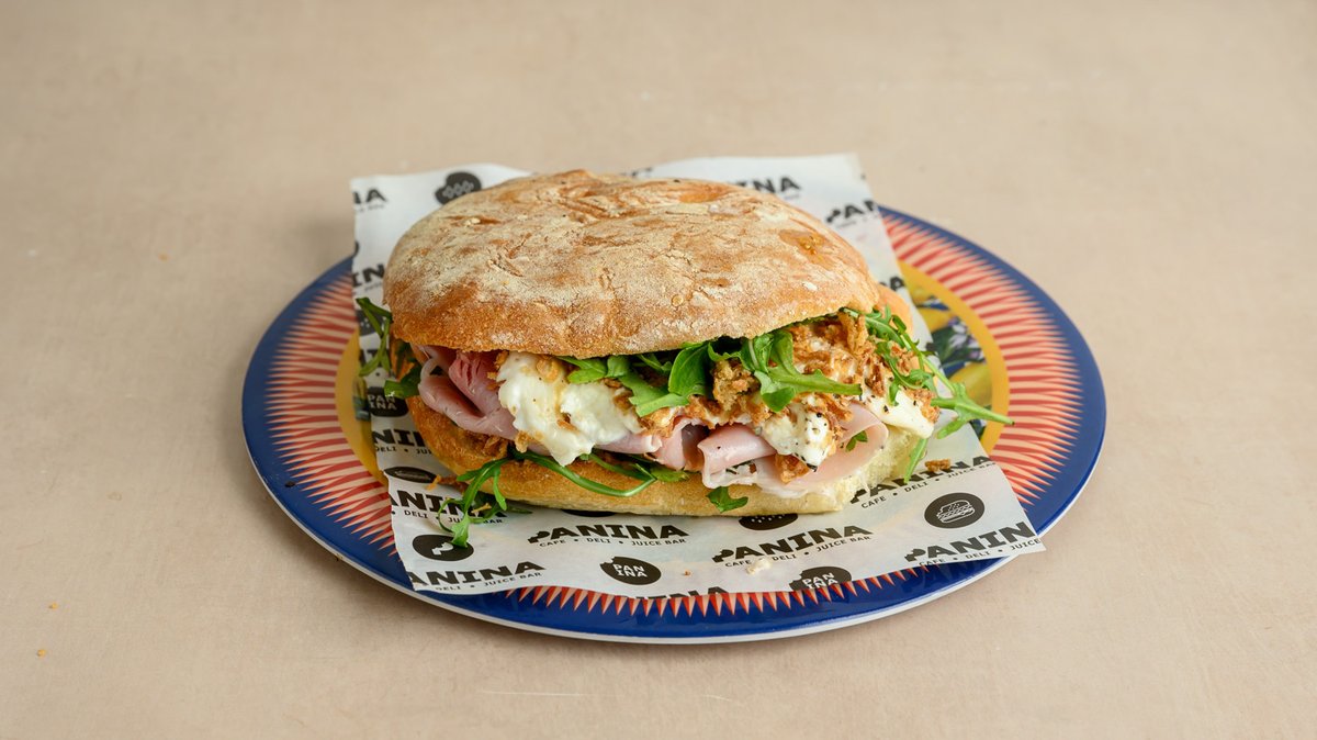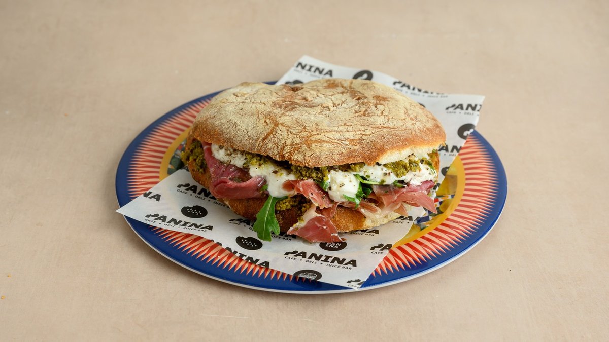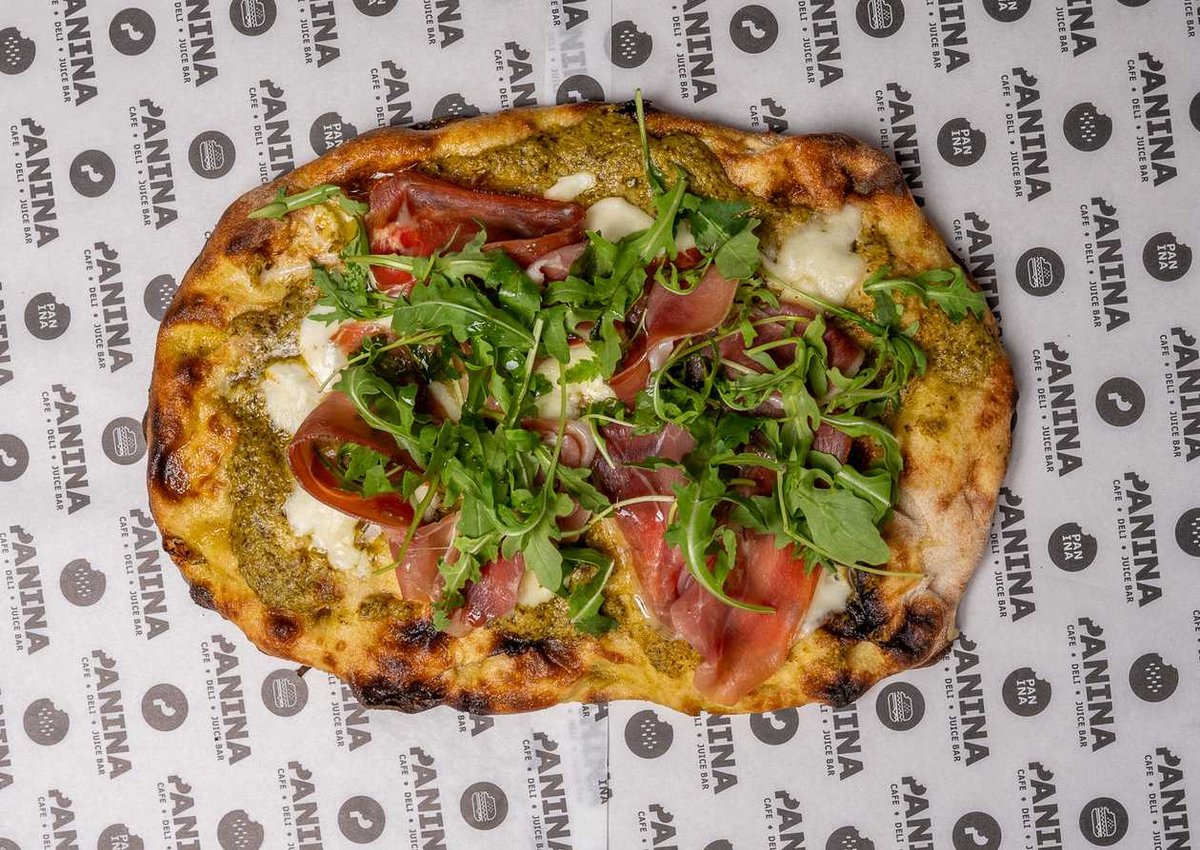 Parma Ham, Burrata, In-house Pesto Genovese, Rucola + EVO Oil If you would like to switch the In-house Pesto from Genovese to Pistachio or vice versa, please select the option in the 'Add-Ons' section below. Requests made in the comments section will not be processed. Cross-contamination may occur. Not suitable for coeliac or severe gluten intolerance. Please contact the outlet if you have serious allergies. If you would like this item to be toasted, please mention it in the comments section. Please note that our Ftira and Ciabatta are made from the same ingredients and are of the same size. As all our bread is freshly made, availability may vary.