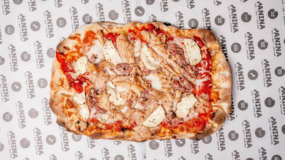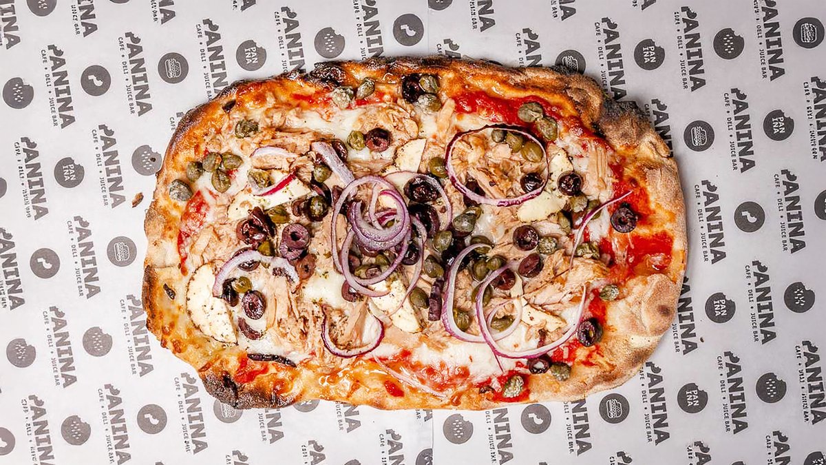 Tomato Sauce, Mozzarella Fior di Latte, Tuna in EVO, Olives, Capers, Ġbejna tal-Bżar, Raw Onions + Basil Oil Cross-contamination may occur. Not suitable for coeliac or severe gluten intolerance. Please contact the outlet if you have serious allergies. Please note: Some toppings are added after cooking and may not be fully melted or may be served at room temperature.