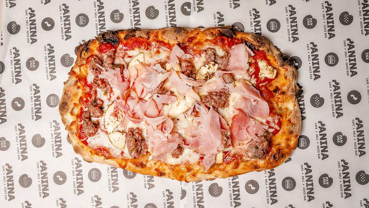 In-house Pesto Pistachio, Crispy Peppered Guanciale, Burrata + Rucola Cross-contamination may occur. Not suitable for coeliac or severe gluten intolerance. Please contact the outlet if you have serious allergies. Please note: Some toppings are added after cooking and may not be fully melted or may be served at room temperature.