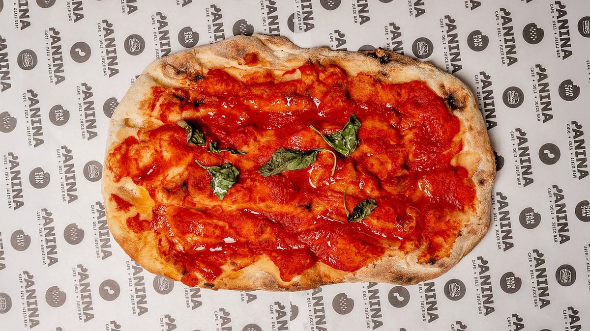Tomato Sauce, Basil + Basil Oil Disclaimer: This dish is prepared without any seafood ingredients. Cross-contamination may occur. Not suitable for coeliac or severe gluten intolerance. Please contact the outlet if you have serious allergies. Please note: Some toppings are added after cooking and may not be fully melted or may be served at room temperature.