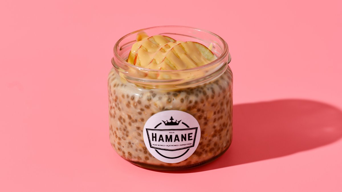 Oats, Chia Seeds, Sugar Free White Choco Spread, Coconut Milk, Cinnamon, Maple Syrup, Peanut Butter, Apple