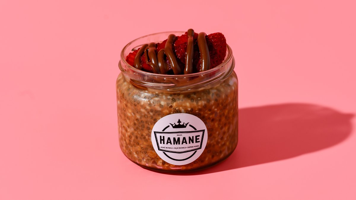 Oats, Chia Seeds, Vegan Chocolate Spread, Coconut Milk, Maple Syrup, Strawberry
