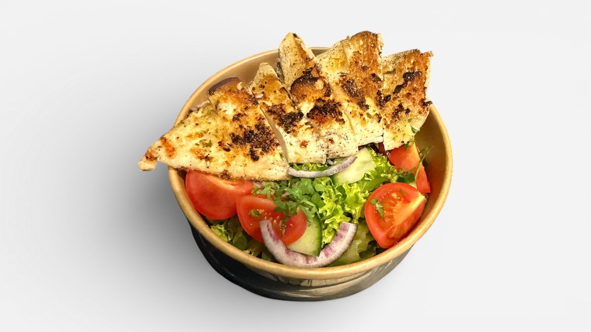 Chargrilled Chicken breast marinated in lemon pepper and italian herbs, served with lollo rosso, cucumber, red onion, cherry tomatoes and a drizzle of extra virgin olive oil.