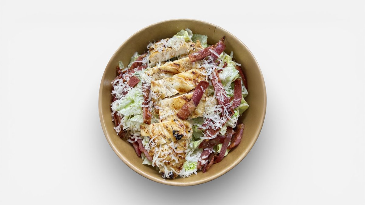 Chargrilled chicken & crispy bacon tossed in anchovy caesar dressing, finished with grated hard cheese, croutons and cherry tomatoes.