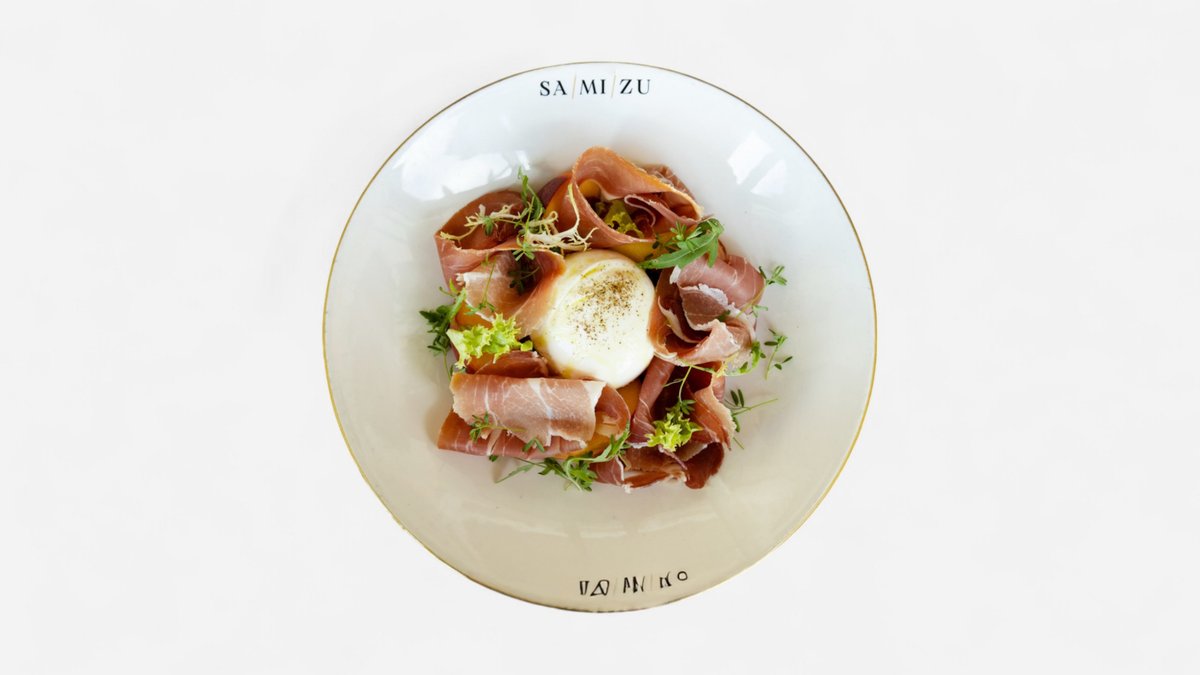parma ham, burrata, peaches, basil, cucumber, balsamic