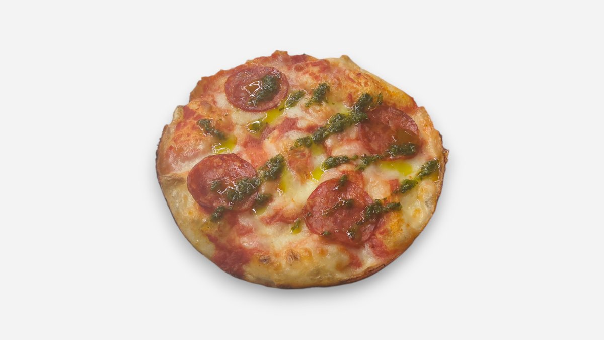 Tomato, Mozzarella,Salami Peperoni,Parsley oil.