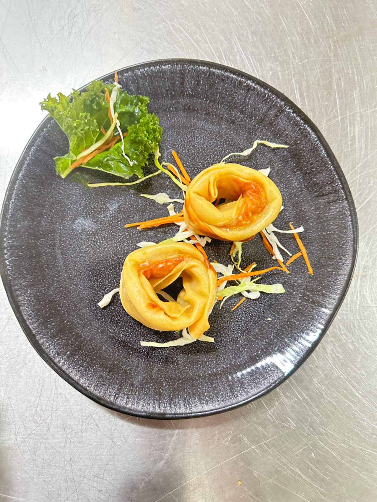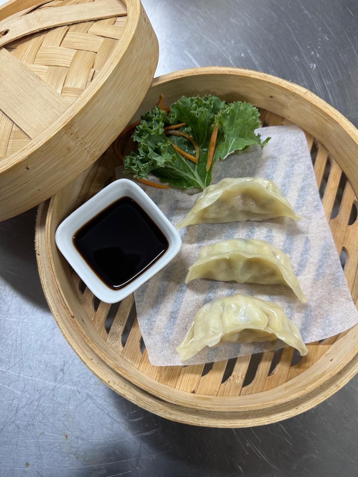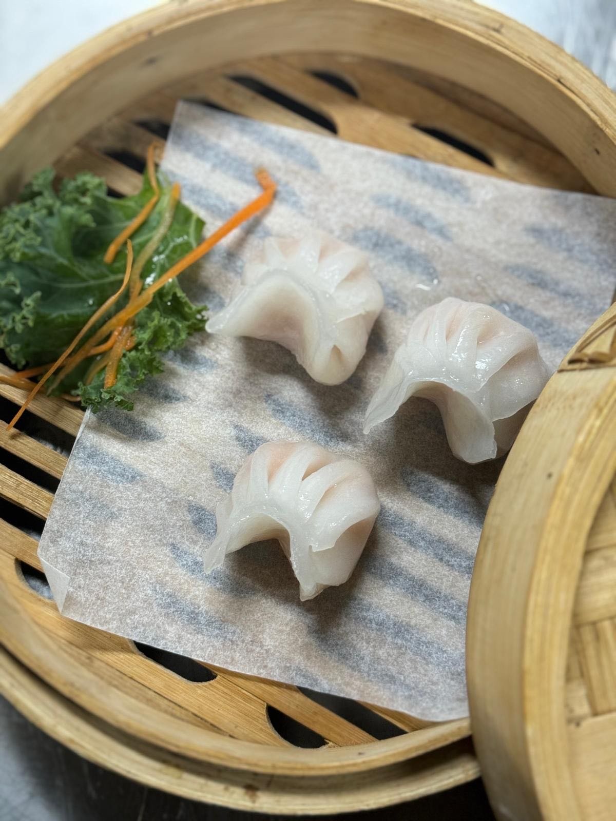 Chicken dumplings 2 pieces, shrimp siu mai 2 pieces, shrimp dumplings 2 pieces