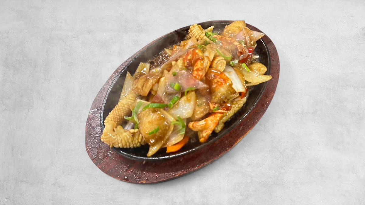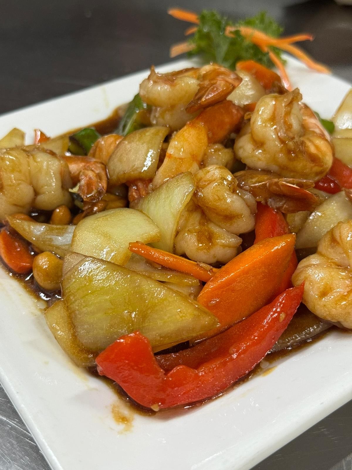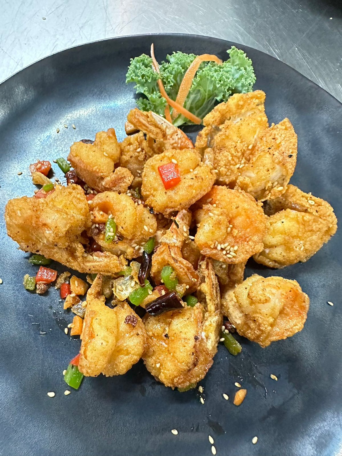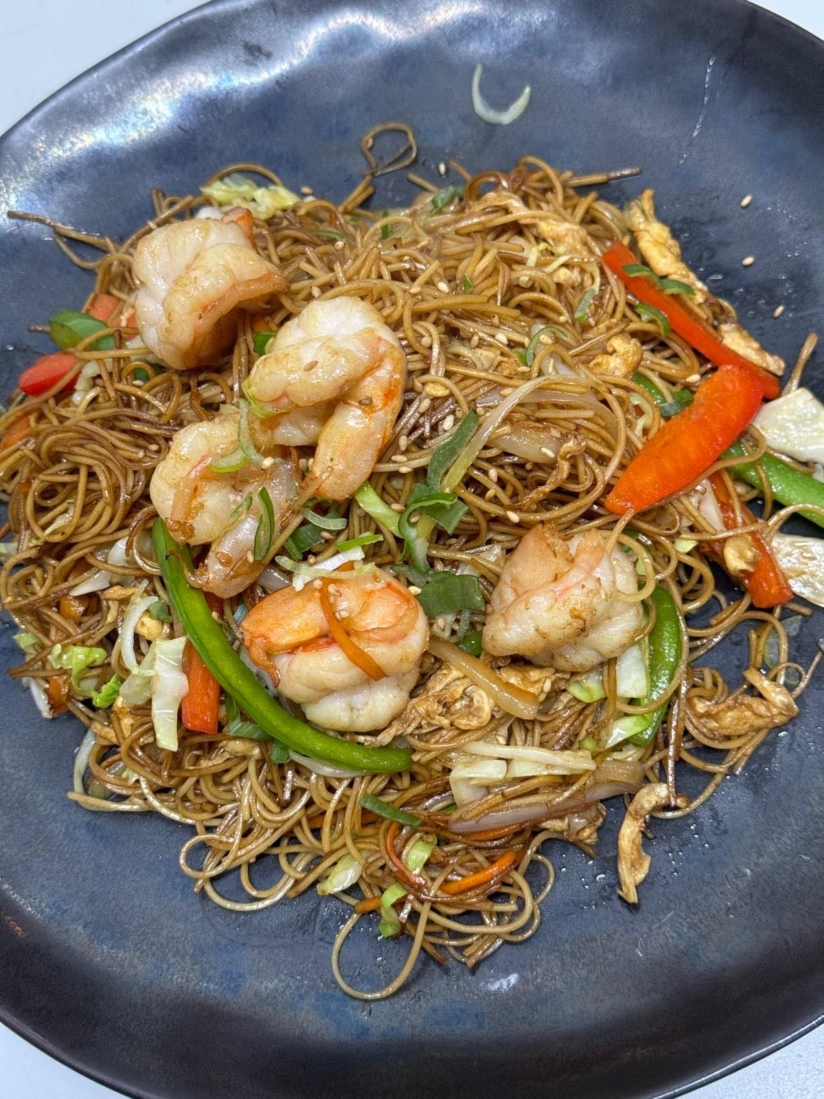 King prawns(6 pieces), eggs, cabbage, onions, carrots, pepper, spring onion,sesame, oyster and soya