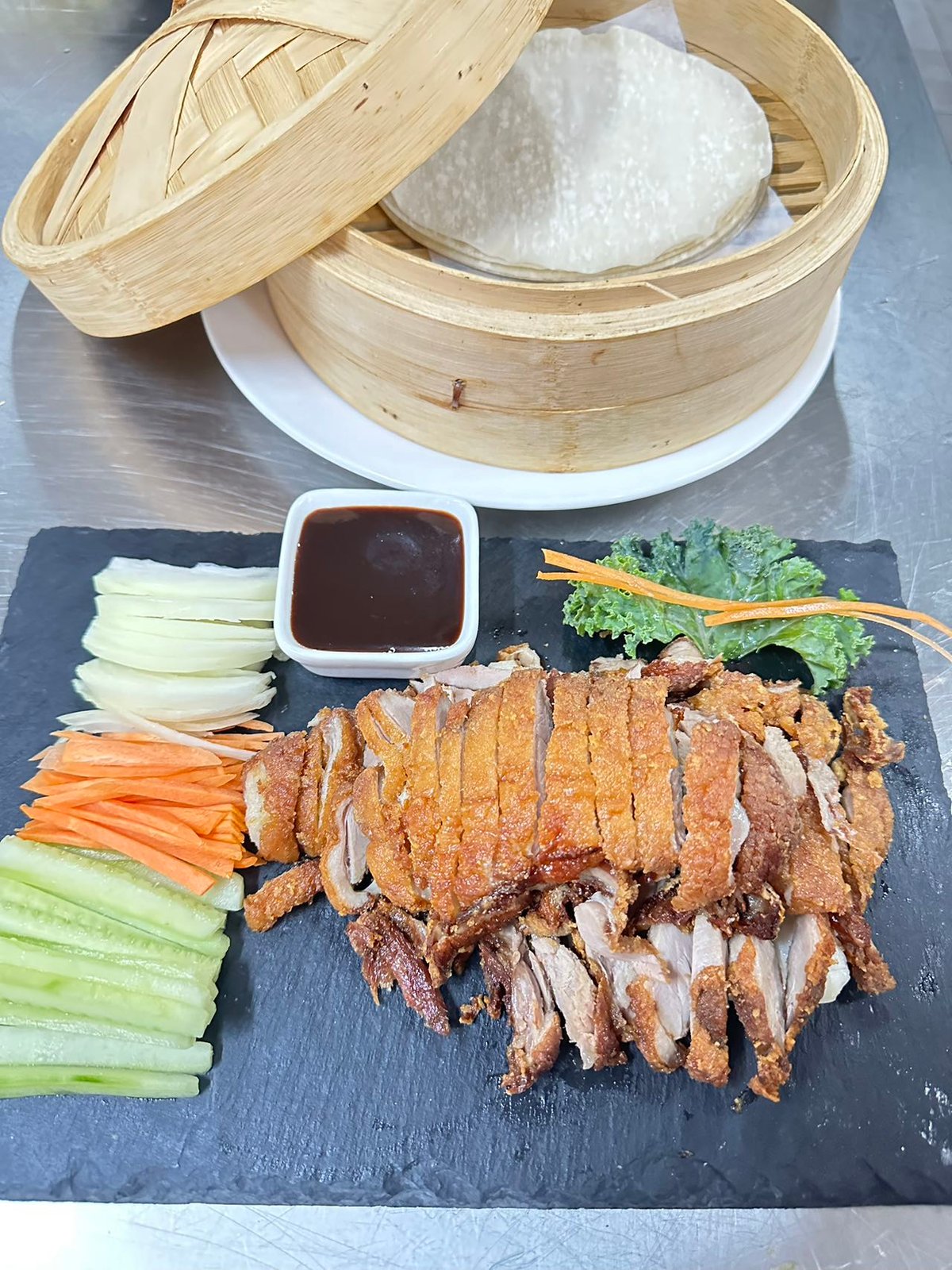 Crispy duck (1/4) sring onion and sesame, duck sauce