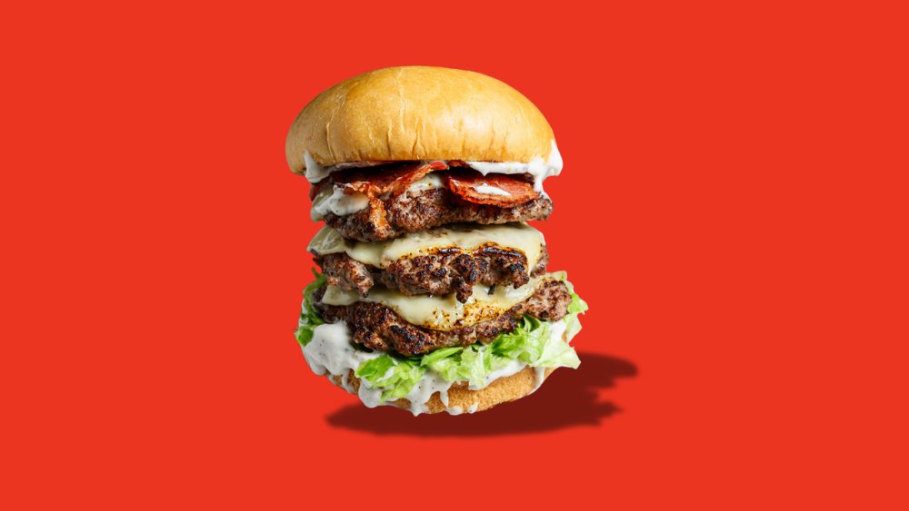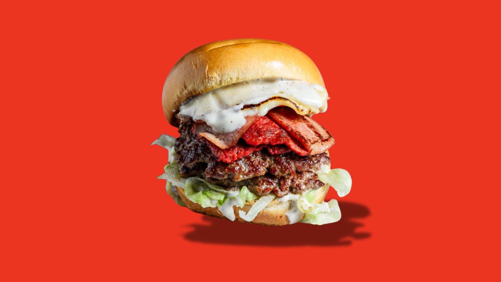 Brioche bun, triple signature sd beef patties, crispy bacon, melted cheese, lettuce and black pepper mayonnaise. Served with signature SD fries