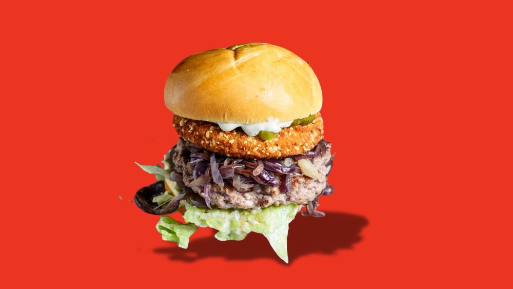 Brioche bun, beyond meat patty, avocado and corn patty, black pepper mayonnaise, lettuce, pickles and caramelised onions. Served with signature SD fries