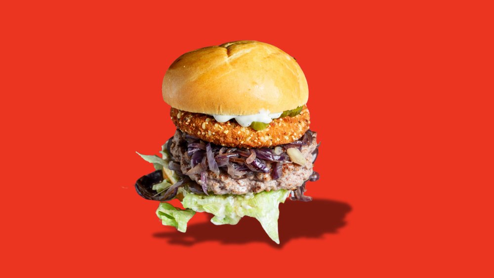 Brioche bun, beyond meat patty, avocado and corn patty, vegan cheese, black pepper mayonnaise, lettuce, pickles and caramelised onions. Served with signature SD fries