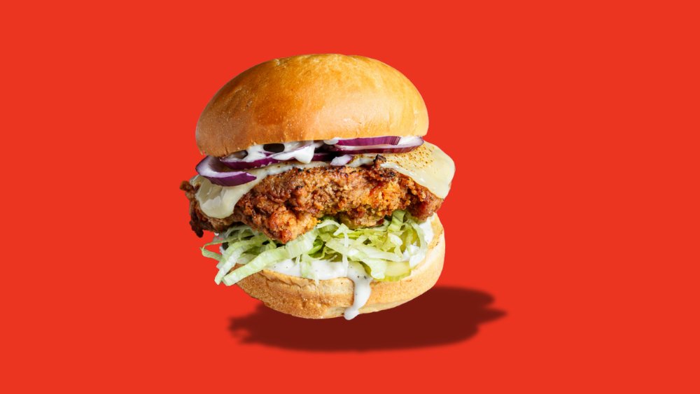 Brioche bun, crispy chicken patty, slaw, pickled onions, bang bang sauce, lettuce and crispy onions. Served with signature SD fries