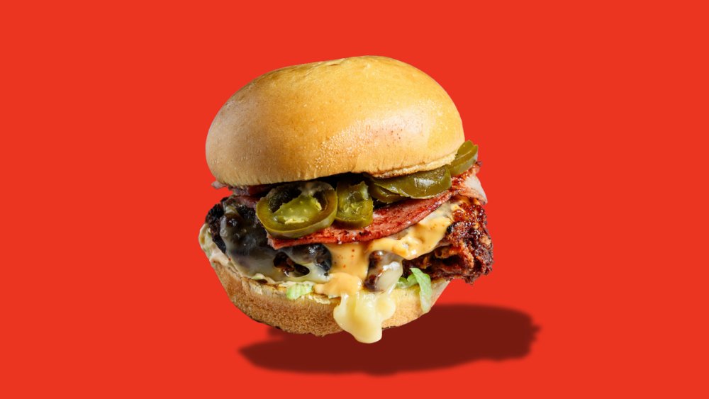 Brioche bun, crispy chicken patty, home-made mango habanero sauce, melted cheese, jalapeños and crispy bacon. Served with signature SD fries