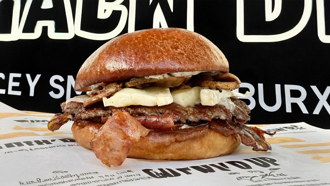 A collaboration with Henry Galea. One beef patty with cheddar, bacon, mushrooms, brie, and truffle mayo, served in a garlic and pepper mayo–toasted brioche bun. Available until the end of February.