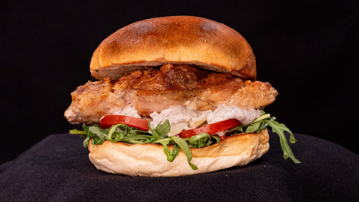 GRILLED CHICKEN THIGH, CRISPY ONIONS, RUCOLA, TOMATOES, TRUFFLE MAYO, GRANA PADANO SHAVINGS, TOASTED BRIOCHE BUN WITH FRIES
