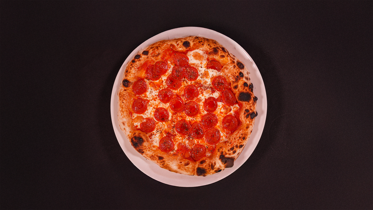 SAN MARZANO TOMATO SAUCE, MOZZARELLA FIOR DI LATTE, SPICY PEPPERONI, OREGANO