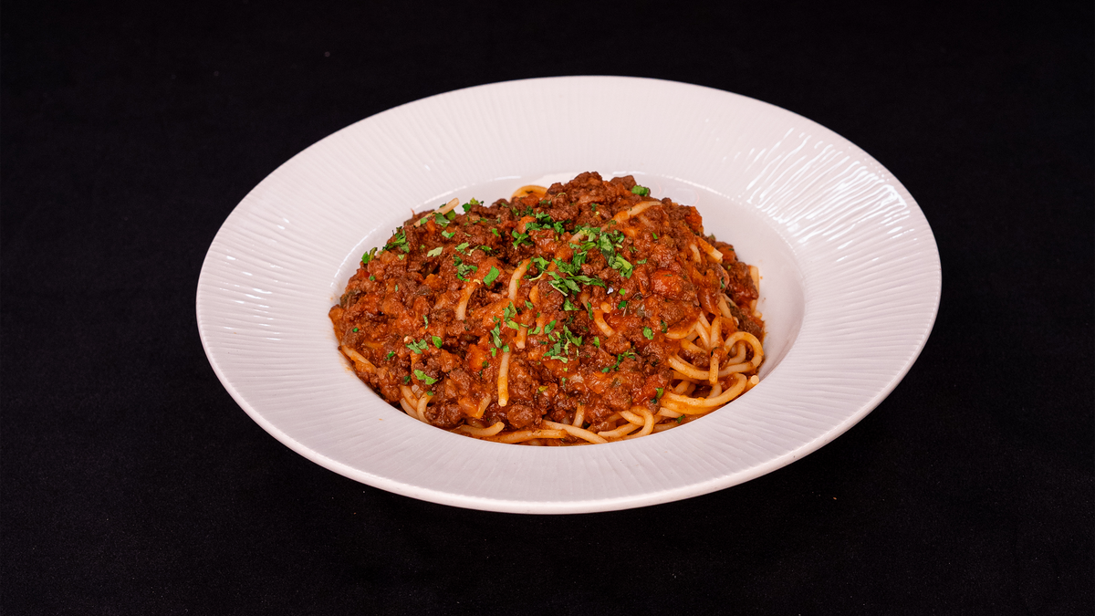 SPAGHETTI, SLOW COOKED BEEF RAGU, RICH TOMATO SAUCE, RED WINE, PARSLEY