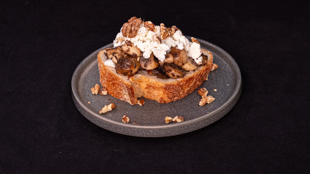 TRUFFLED MUSHROOMS, LOCAL RICOTTA, WALNUTS, ON LOCAL BREAD