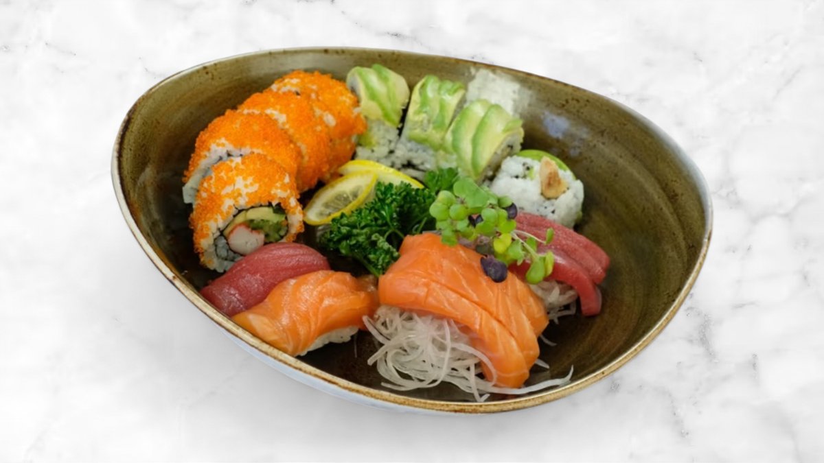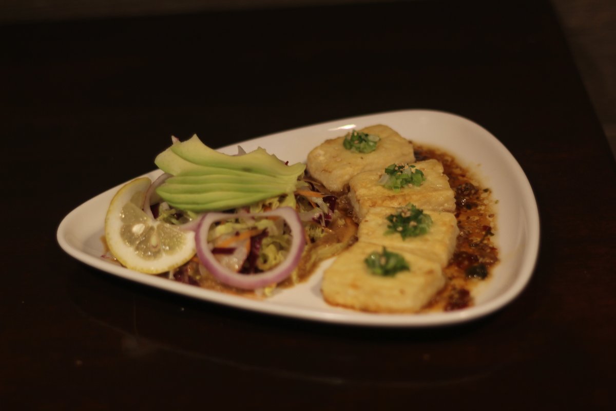 Slightly grilled salmon with avocado, ponzu and goma dressing