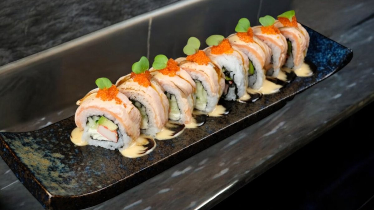 Slightly grilled tuna, oranges slices with ponzu and goma dressing