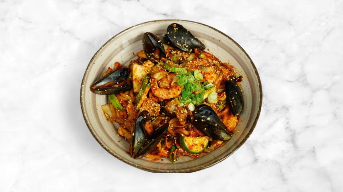 Prawns, fresh mussels, vongole, octopus, calamari, assorted vegetables and garlic 🌶 Spicy