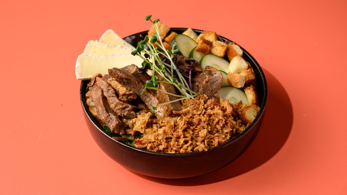 Beef stips brie cheese, croutons, crispy onions, cucumber, mixed leaves and house dressing