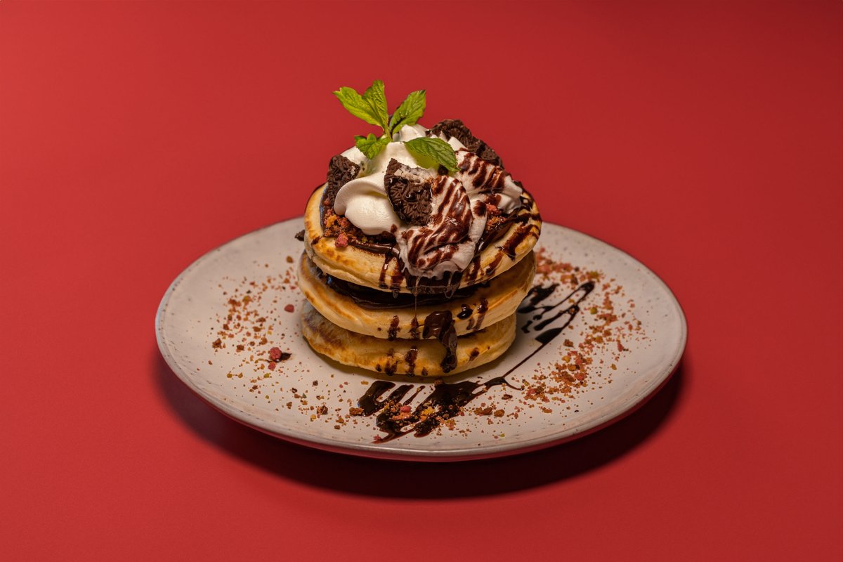 Dark chocolate spread, oreo biscuits, chocolate sauce and whipped cream