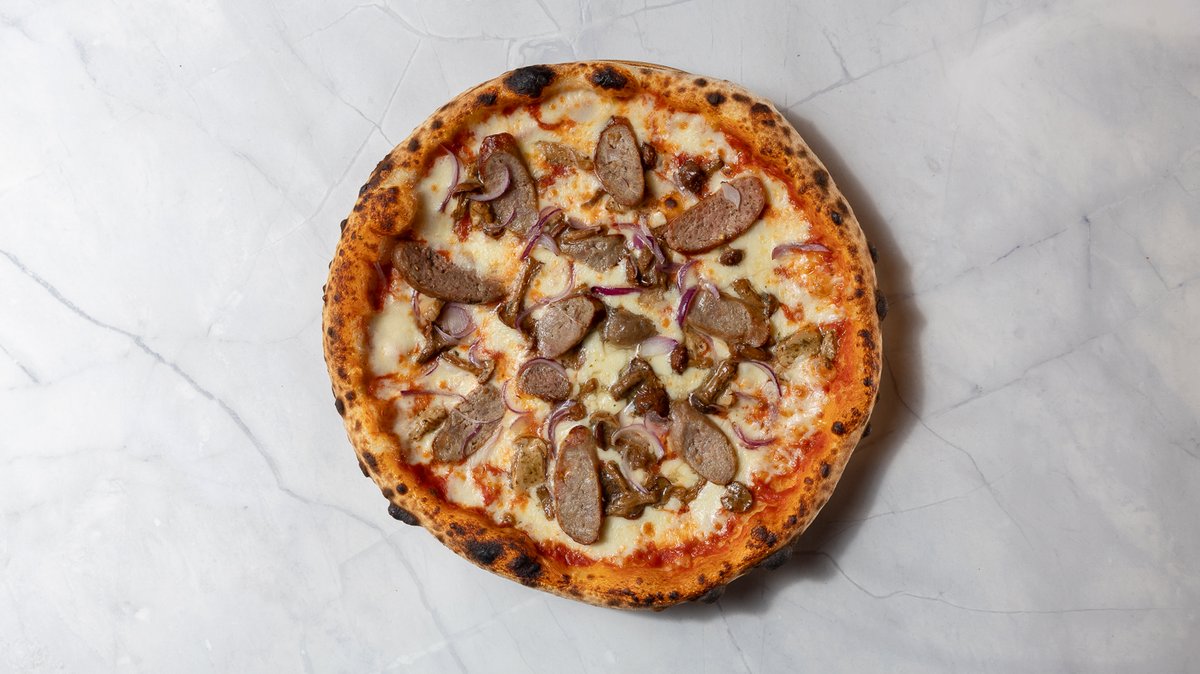 Tomato sauce, mozzarella fior di latte, spicy salami and sautéed onions