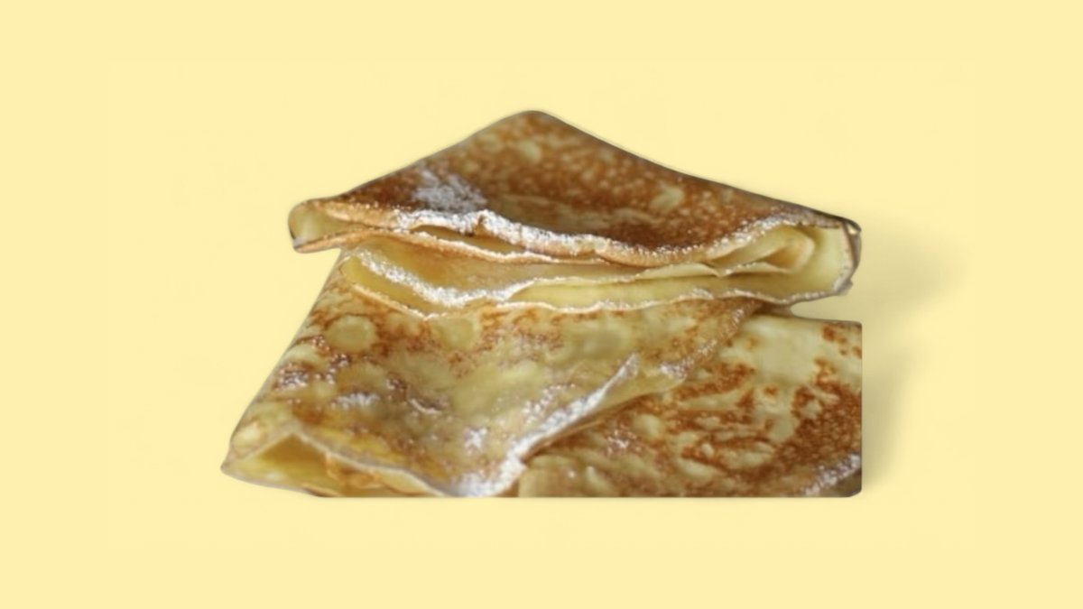 Thin strands of sweet spaghetti nestled within a soft crepe, adorned with seasoned fruits and a rich chocolate drizzle.